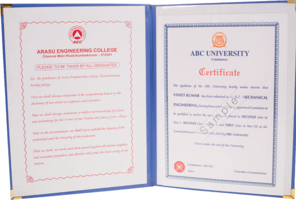 Convocation file supplier Chennai, Certificate & convocation folder printing, Custom convocation files Chennai, University convocation file supplier,